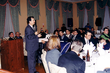 Councillor Li Preti as Grand Martial of the Canadian Hispanic Day Committee at Downsview Arena. The second annual parade on Jane St. between Finch and Wilson Ave. attracts tens of thousands of residents who line up the street to observe allegorical floats, colourfully decorated by the various Latin American countries. The parade gives an opportunity to display the best that the Canadian Latin community has to offer in terms of culture, folklore, dance and music in Toronto.