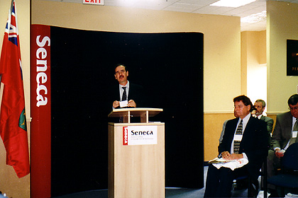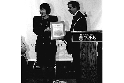 Councillor Li Preti presented on behalf of the Mayor of Toronto, a scroll to Lorna Marsden, president of York University and on the occasion of the University’s 40th anniversary. York University has developed a good relationship between the local schools and the community colleges.